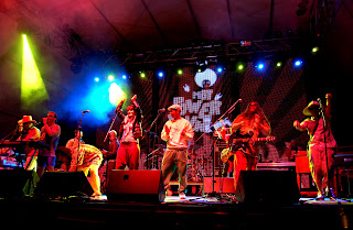 Los siguientes en aparecer fueron The Haggis Horns, una banda escocesa liderada por la sección de vientos de Amy Winehouse, y que sobre el escenario son un octeto en el que incluyen guitarra, bajo, batería, percusión, teclado y la colaboración de la vocalista Nia Saw en temas como "Hot Damm" o "Got To Lose Your Way". Una formación en la que hay que destacar, además de la gran labor de sus virtuosos metales, una sección rítmica increíble, dando como resultado un directo potentísimo. Este grupo combina en su energético directo, estilos como el funk, soul reagge y un afrobeat muy bailable ante el que es muy dificil parar de moverse.Después de la fieta que montaron The Haggis Horns, para rematar una noche del mejor funk actual, The New Mastersounds presentaron su último disco "Ten Year On". Su actuación fue lo más parecido a una explosión groove aderezada del mejor funk, soul y jazz que puedas encontrarte ahora mismo. Una auténtica música de baile que por momentos sonaba a electrónica y que puso de vuelta a un público enloquecido con largas improvisaciones de guitarra, teclado y saxo/flauta. Resulta muy dificil resistirse al proyecto montado por este cuarteto de Leeds que no es otro que transmitir pura energía en forma de cancons frenéticas recordando a lo viejos maestros, un placer para los oídos negros!!!TEXTO: Carlos Alba